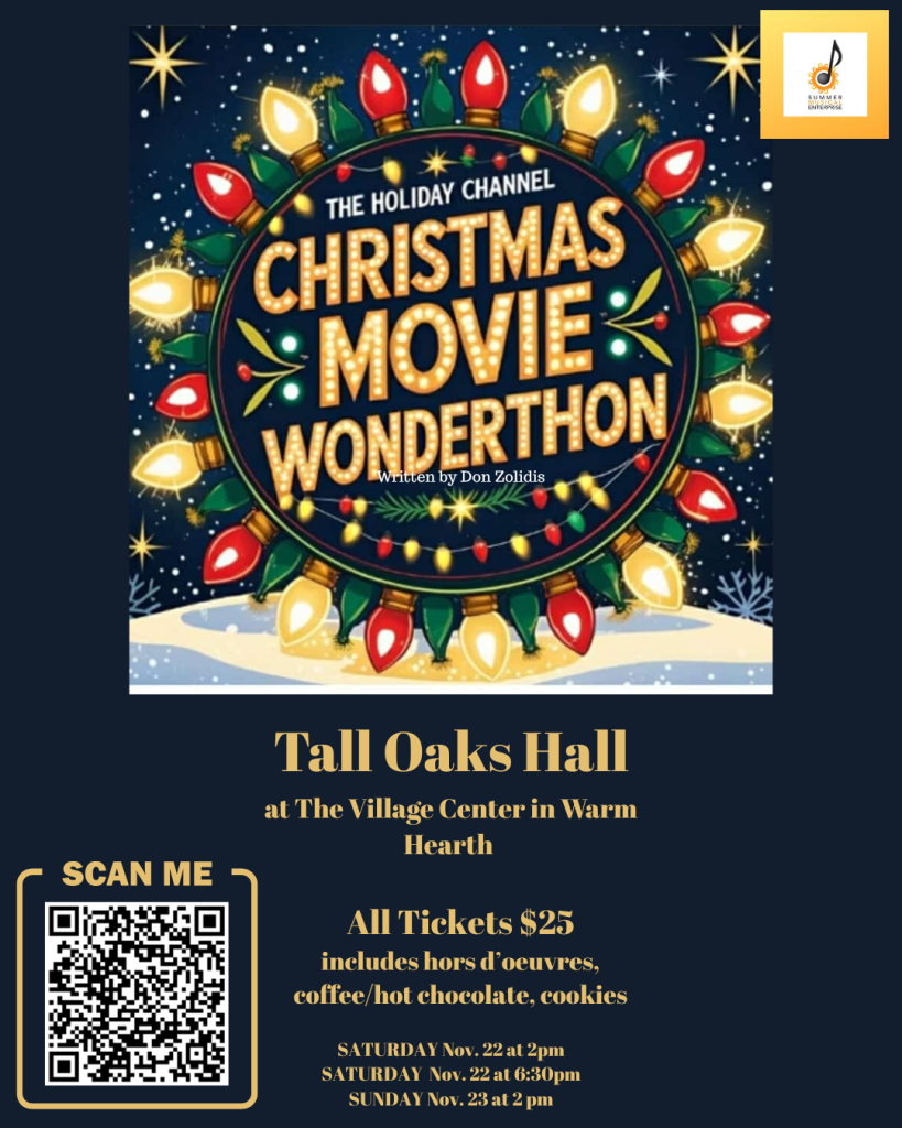 Get ready for an evening of laughter, holiday cheer, and festive fun! Summer Musical Enterprise presents “The Holiday Channel Christmas Movie Wonderthon” written by Don Zolidis, a live theatre parody of all your favorite holiday TV movies.